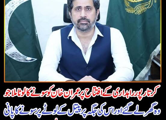 کرتارپورراہداری کےافتتاح پر عمران خان کوسونےکالوٹاملا جو وہ گھر لے گئے اور اس کی جگہ پر پیتل کے لوٹے پر سونےکاپانی چڑھوا کر توشہ خانہ میں جمع کرادیا، فیاض الحسن چوہان کاالزام